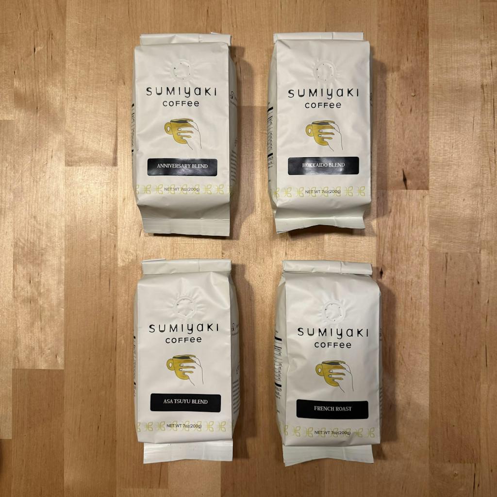 Buy this Combination Set containing four popular Premium Blend Sumiyaki Coffees. Your order will contain a total of four 200g packages of the following: